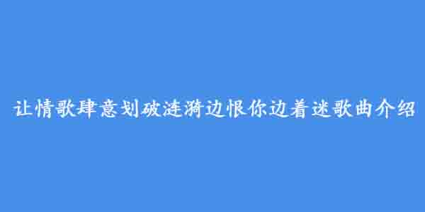 让情歌肆意划破涟漪边恨你边着迷是什么歌,最近这首歌在抖音上非常的火热,这首歌的歌名叫做,情歌几句,由阿冗演唱,接下来小编给大家带来具体的让情歌肆意划破涟漪边恨你边着迷是什么歌的歌曲介绍。...